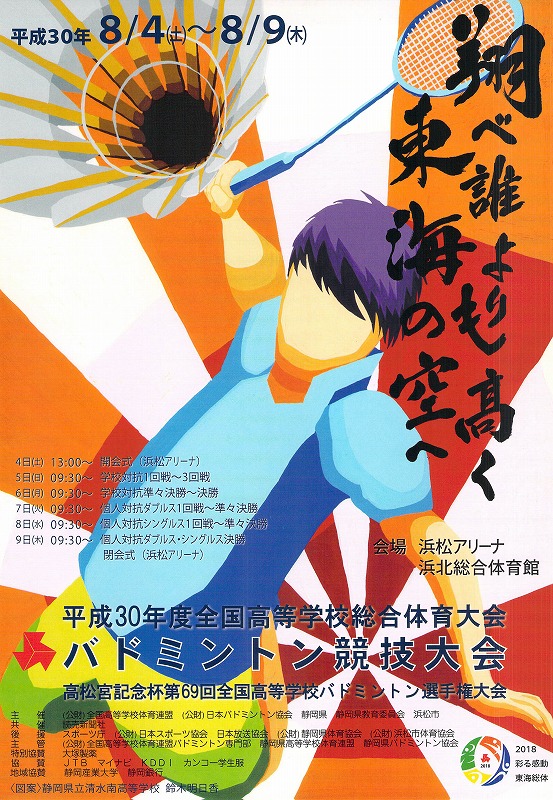| 主催 | (公財)全国高等学校体育連盟 (公財)日本バドミントン協会 静岡県 静岡県教育委員会 浜松市 |
