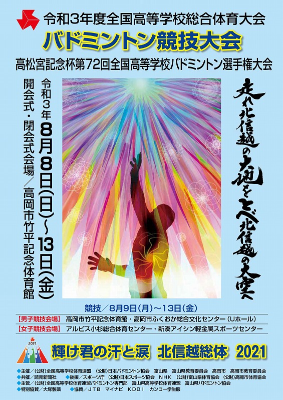 | 主催 | (公財)全国高等学校体育連盟 (公財)日本バドミントン協会 |