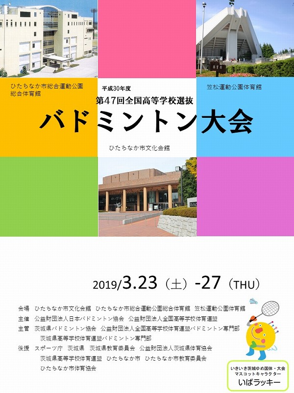 | 主管 | 茨城県バドミントン協会 (公財)全国高体連バドミントン専門部 茨城県高体連バドミントン専門部 |