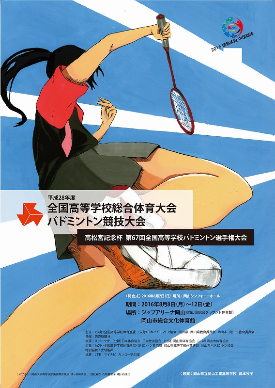 主催(公財)全国高等学校体育連盟 (公財)日本バドミントン協会 岡山県 岡山県教育委員会 岡山市 岡山市教育委員会