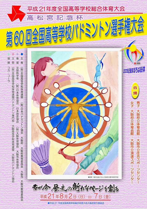 | 主催 | (公財)全国高等学校体育連盟 (公財)日本バドミントン協会 大阪府 大阪府教育委員会 大阪市 大阪市教育委員会 |